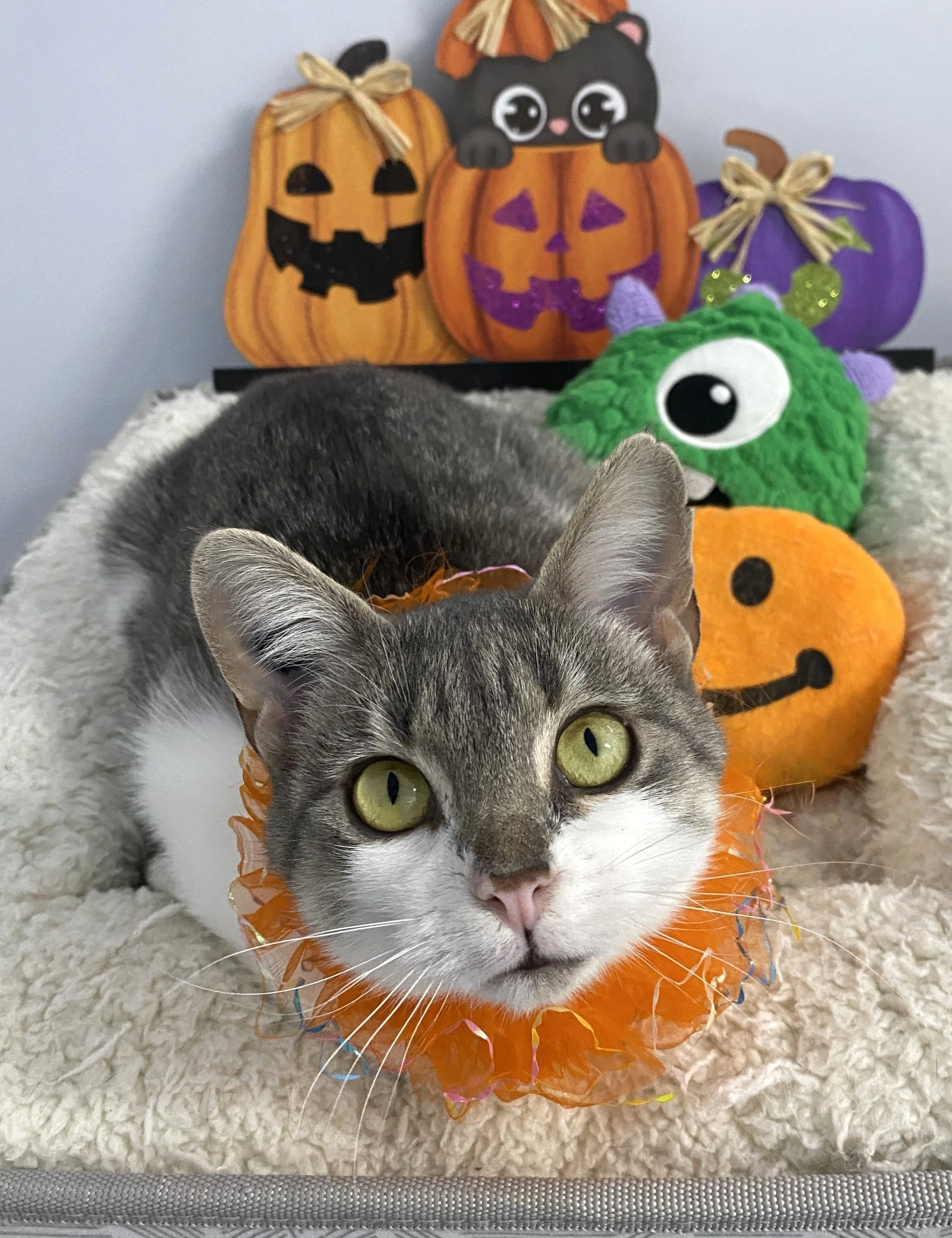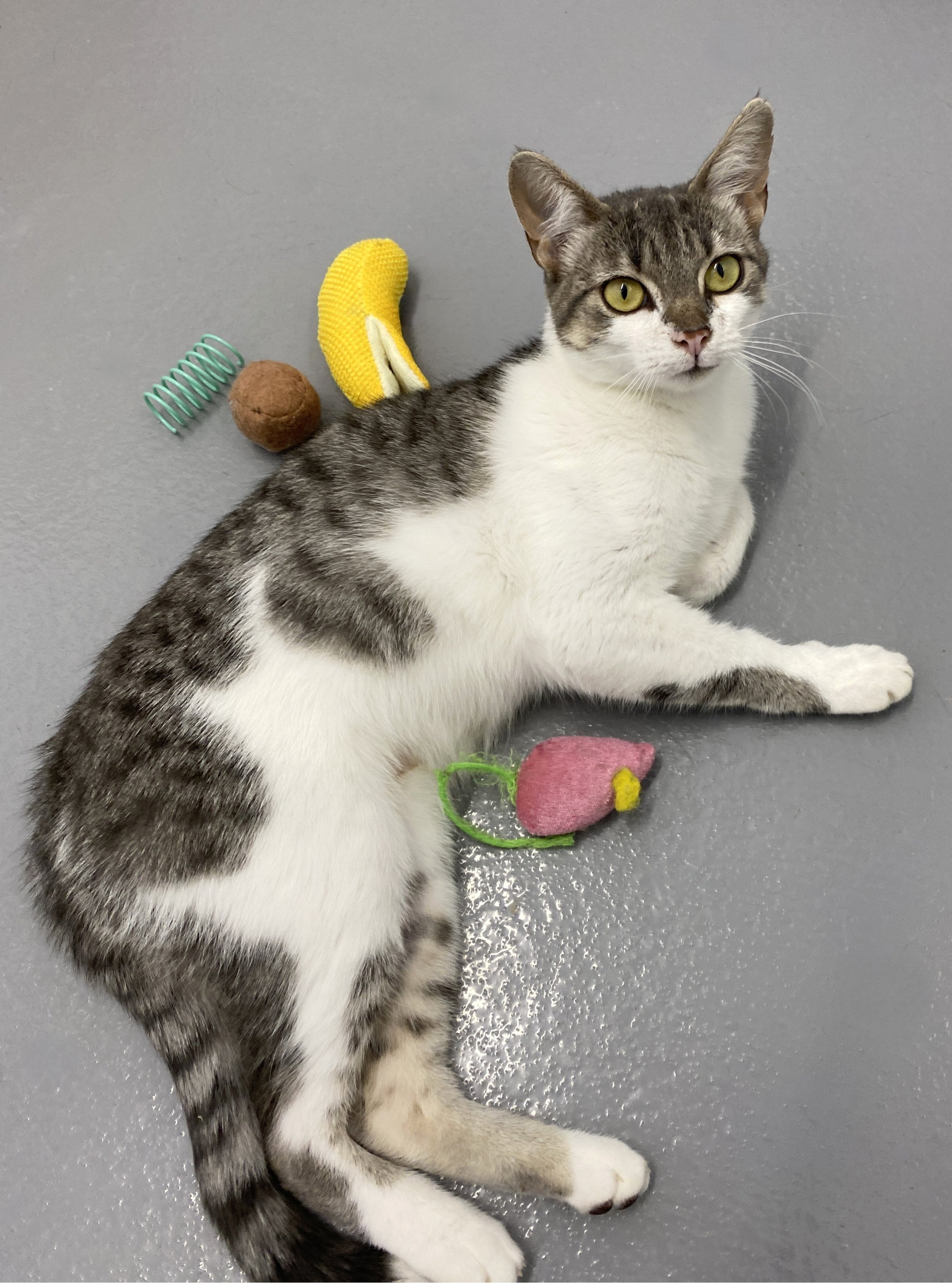 Don’t let Annabelle’s petite stature fool you. This young girl is confident and spirited. Annabelle is playful and curious, always on the lookout for her next adventure, whether it's exploring new nooks or chasing after her favorite toys (or playmates!). She has a spirited charm, often showing off her playful antics. With her combination of energy and affection, Annabelle would be the perfect companion for those who love a spirited feline friend!