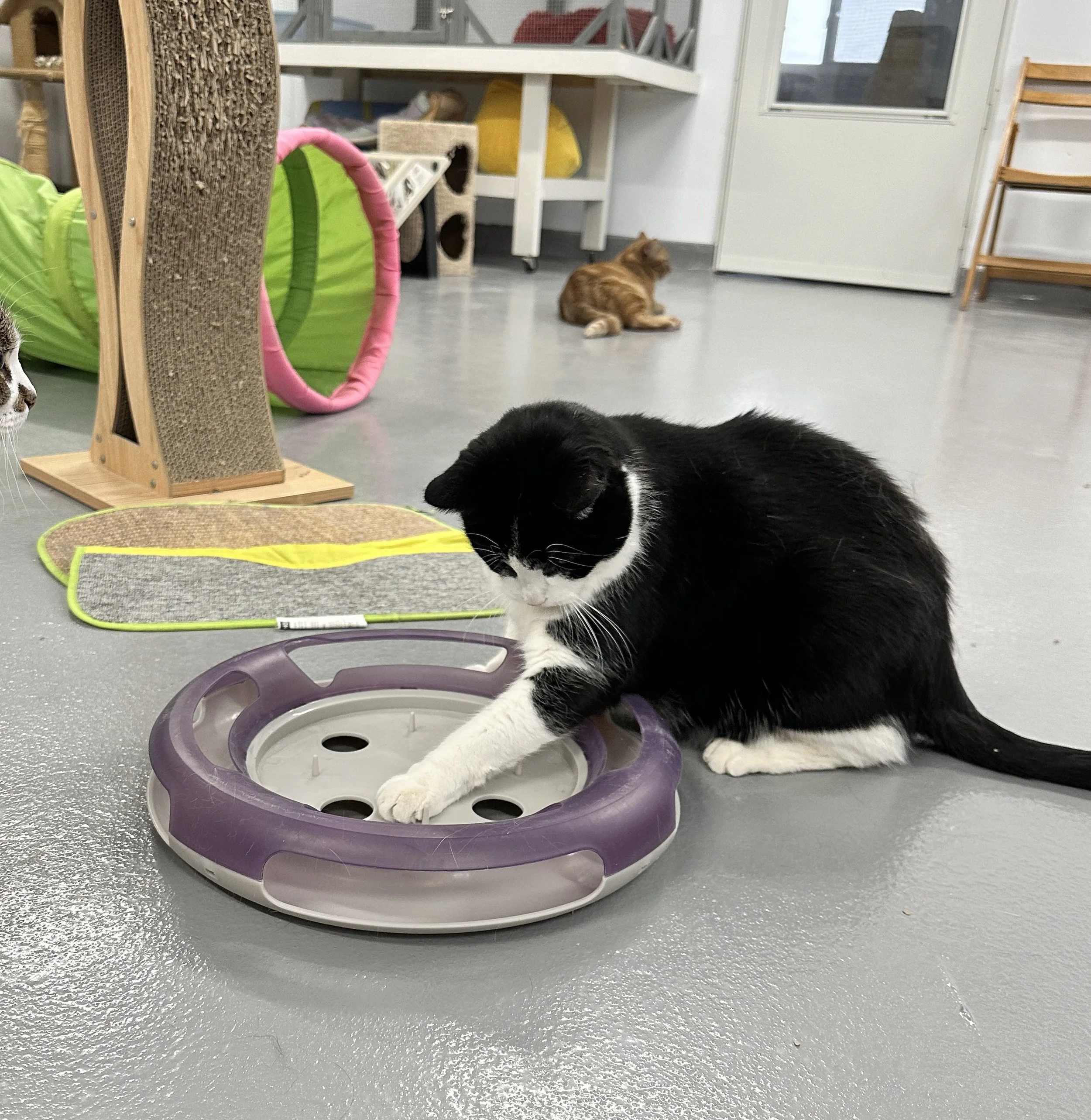 Rudy is all decked out in his Tuxedo hoping visitors will notice what a handsome boy he is. As a mature kitty, Rudy has no time for the antics of the young fools who play around him. Rudy has better things to do, like following the friendly volunteers while waiting his turn for scratches and combing. Rudy is a solid communicator who will let you know when his affection cup is full. He will then find a cozy spot to observe the shenanigans unfolding around him. Perhaps a nice cat nap is next on his agenda. Rudy would love for visitors to come and meet him so he can win their hearts and secure a forever home.